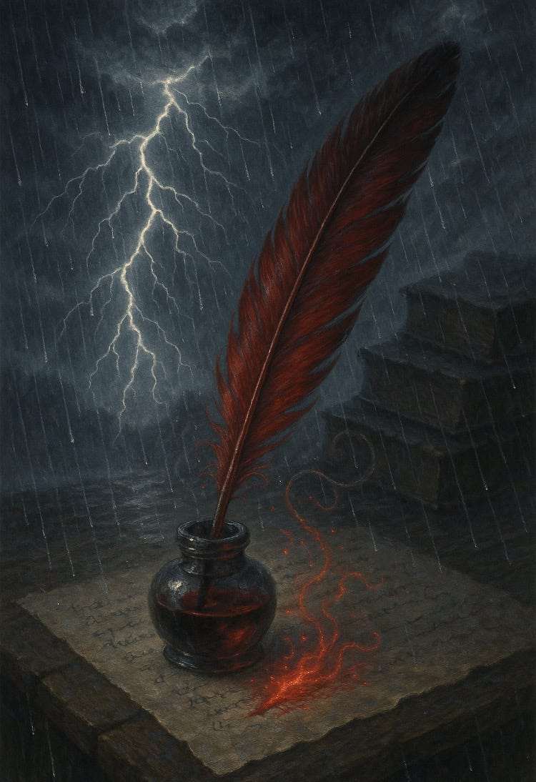 Eli reached his bedroom and closed the door. He stared across the room and gazed at the comic he had drawn at his desk. Reaching into his backpack, he retrieved the golden quill pen. His breaths were heavy. Staggering to the desk, the sounds of his father’s footsteps rang through the house. “I sure hope this works.”
